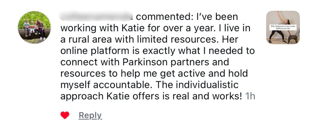 Over the years, I’ve worked with people at all stages of the PD journey — and I’ve seen what a difference the right movement plan and ongoing support can make. That’s exactly why I created this membership: to give you consistent access to expert care, uplifting community, and the tools to help you keep moving forward.